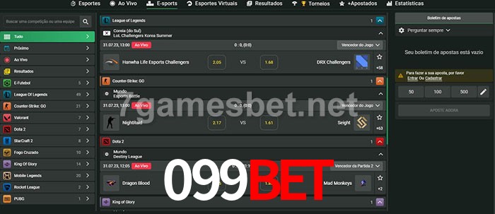 O 099bet oferece uma grande seleção de opções de apostas em e-sports com probabilidades competitivas